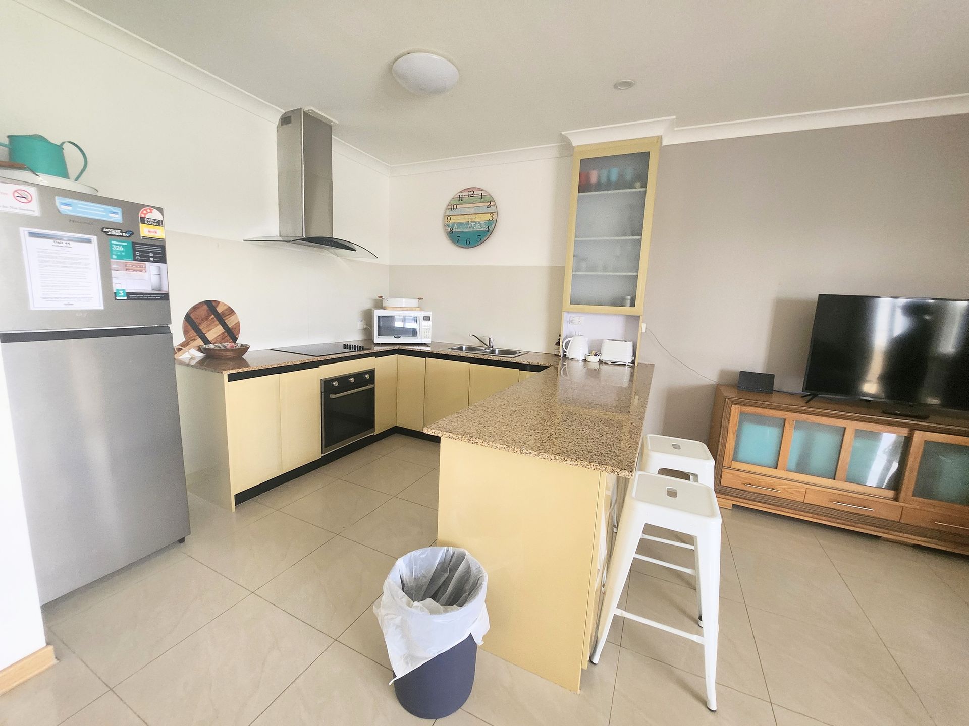 Unit 44 is fully self-contained with an electric cooktop and oven, air-conditioning to the living area and main bedroom.